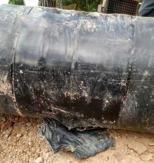 2)、材料因素:PE防腐层粘着力差,在拖管过程中摩擦力大容易脱落。