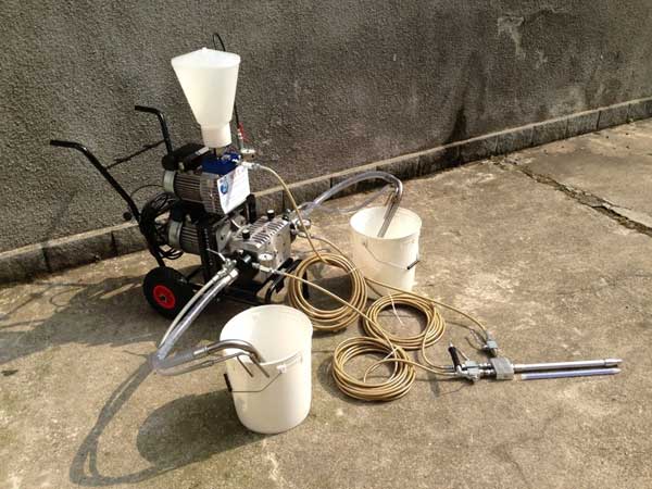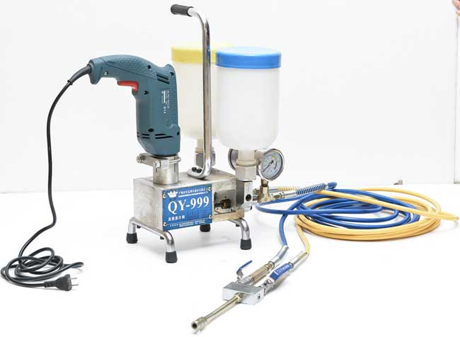 3、布点:用电钻在布的孔点钻孔,安装灌浆针,对接高压注浆机。